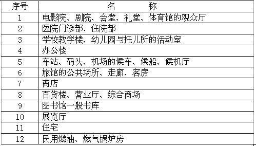 表F.0.1 民用建筑类非必要配置卤代烷灭火器的场所举例