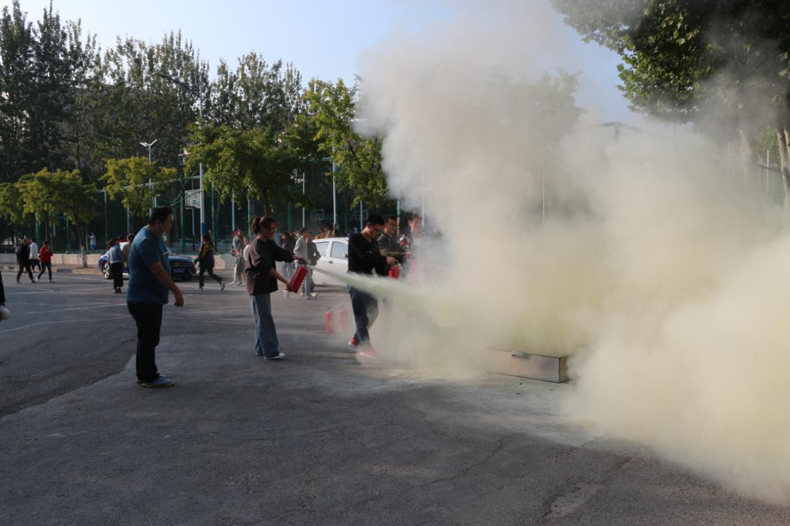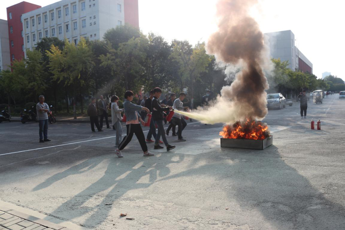 第三,火灭作业演练。保卫部(处)工作人员通过现场演示,向大家生动而详细地介绍了干粉灭火器的使用方法。随后,在场的每位师生逐一进行了灭火器的灭火体验。