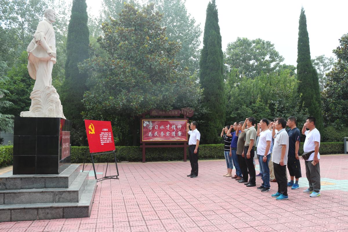 根据学校“为深入学习贯彻习近平新时代中国特色社会主义思想和党的十九大精神,结合纪念建党97周年,根据《中共河南省委组织部关于在“七一”期间认真组织开展以“不忘初心、牢记使命”为主题的支部党日活动的通知》(豫组电[2018]50号)文件要求”的要求,2018年7月11日上午,保卫部(处)党支部14名党员干部,在支部书记张谦智的带领下,到建安区水道杨村杨水才纪念馆参观学习,学习和发扬杨水才同志“小车不倒只管推”的大无畏革命精神。