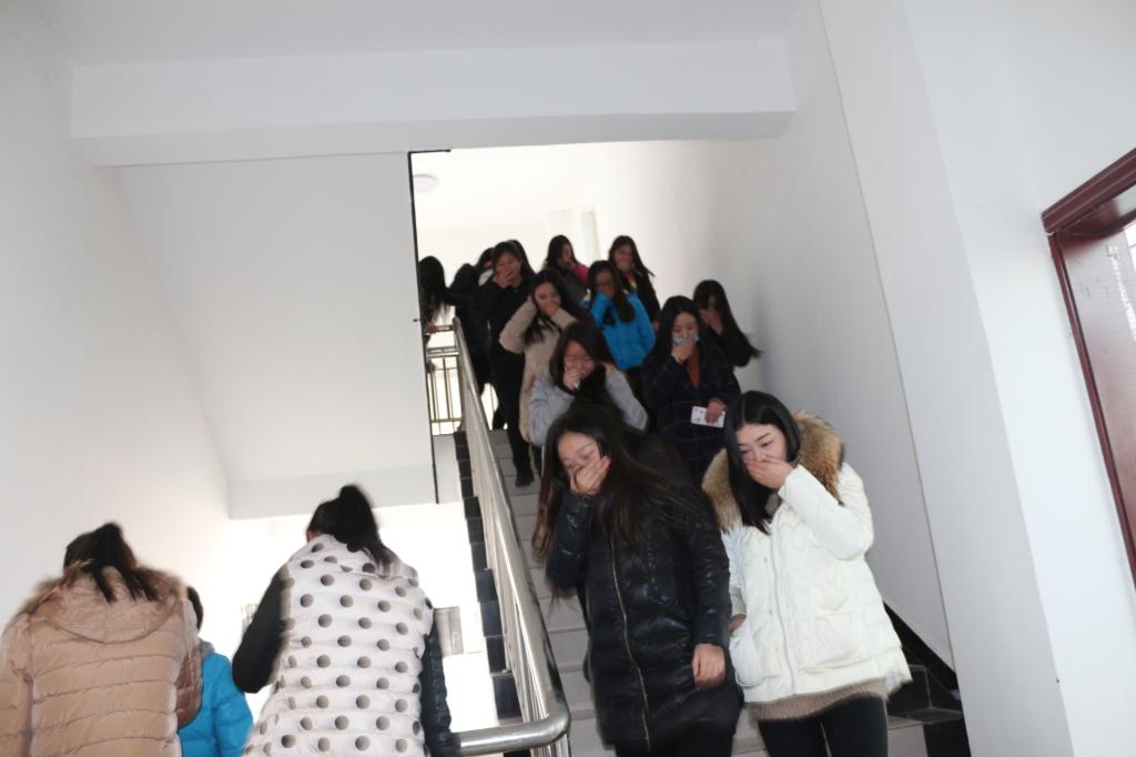 4:00,全院师生在教学楼进行了消防安全疏散演练。随着刺耳的警报声拉响,学校应急疏散演练指挥部下达了“教学楼发生火灾,请同学们立即撤离”的命令。辅导员及保卫处工作人员,各就各位迅速地引导楼内学生快速疏散,带领学生弯着腰、猫着步、贴着墙根,用手帕、毛巾等捂住口鼻,沿着学校指定的疏散通道快速有序地撤离到图书馆前的安全地带。随即辅导员清点人数,并层层向上汇报,全校700多名师生全部安全疏散完毕,整个逃生过程迅速有序。