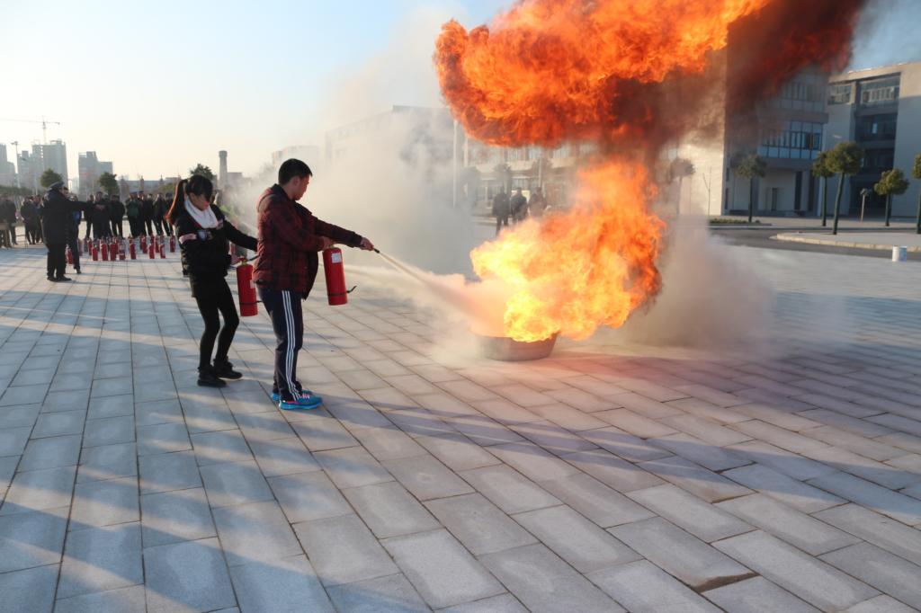 最后,李参谋在图书馆前向师生讲解了灭火器的原理和使用方法,并进行了现场演示。在认真听了讲解及观摩后,同学们以班为单位,依次亲自体验了现场灭火的过程,面对熊熊燃烧的火堆,同学们表现沉着,熟练地按照灭火的步骤和方法,将燃起的浓烟大火迅速扑灭,达到了冷静沉着面对突发事件,成功快速扑灭大火的消防标准。
