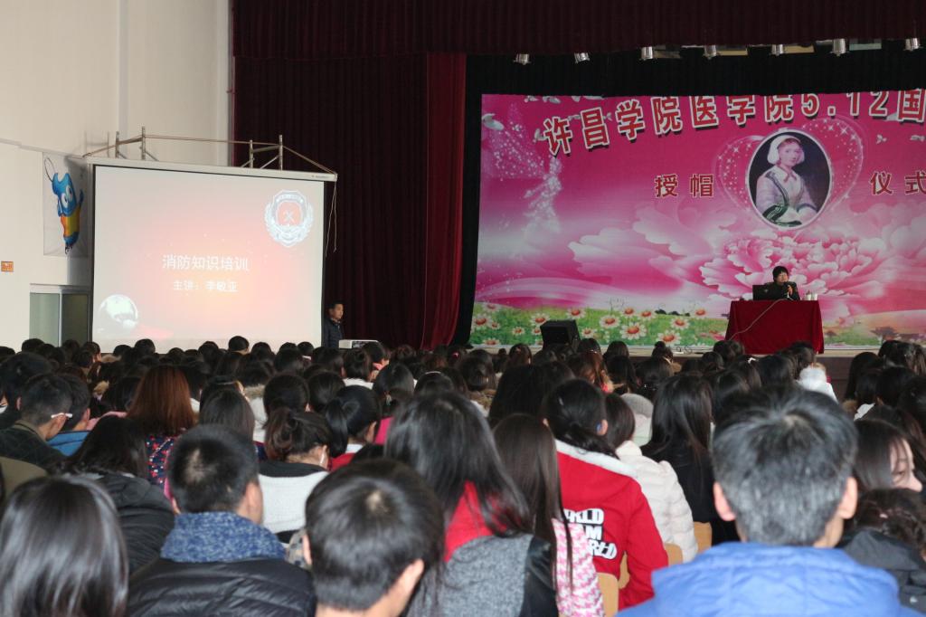 下午3:00,在医学院礼堂,开发区消防大队的李敏亚参谋向同学们进行了消防知识培训,李参谋通过具体案例讲述了火灾的危害性和火灾现场的应急处置方案。