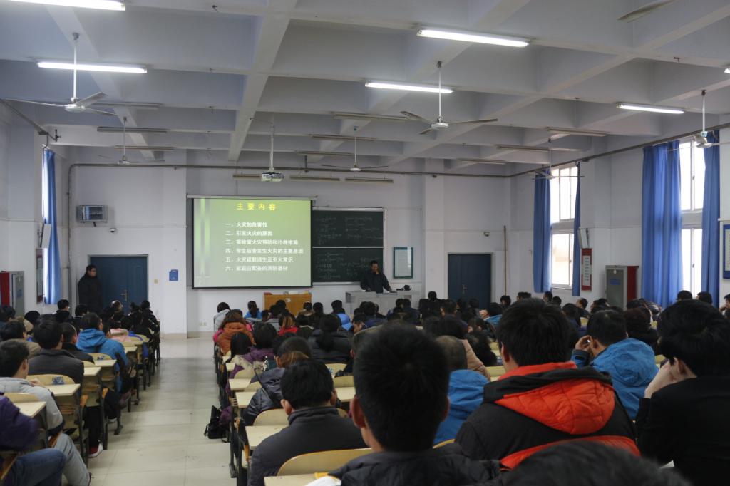 此次活动特邀许昌市恒宇消防安保工程公司副总经理王英杰同志对我校师生进行培训。王英杰同志从火灾的危害性、引发火灾的原因、实验室火灾预防和扑救措施、学生宿舍发生火灾的主要原因、火灾疏散逃生及灭火常识、家庭应配备的消防器材等六个方面入手,并结合自身丰富的经验,深入浅出地介绍了消防安全的相关知识及火场逃生的必备技能。他强调在日常生活和工作中,要杜绝使用违章大功率电器,人走电断、落锁,不随意乱丢烟头,学生宿舍内保持卫生整洁等,提高防火、防盗意识。