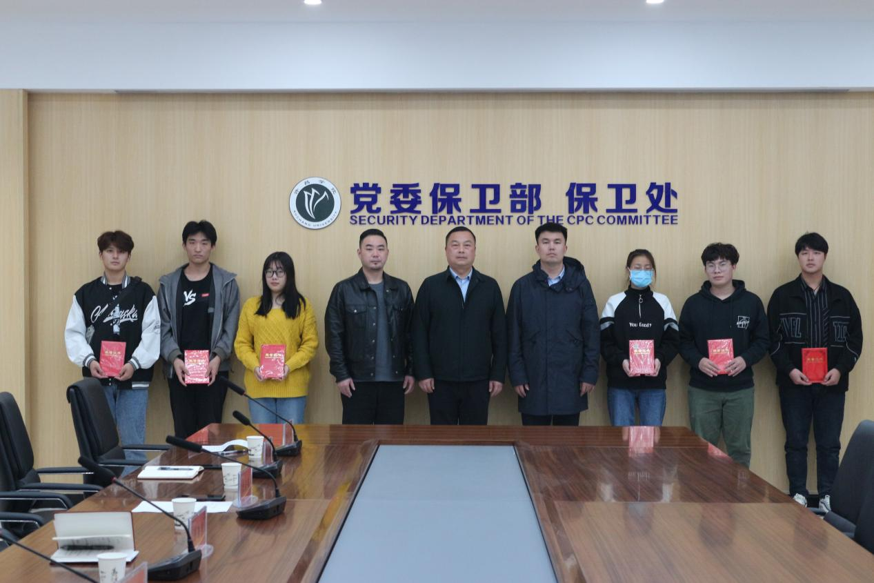 会上,保卫处长陈浩勇、校团委书记史若延、学生工作处学生管理科科长杨乐为获得表彰的先进成员代表颁发了奖状和荣誉证书。
