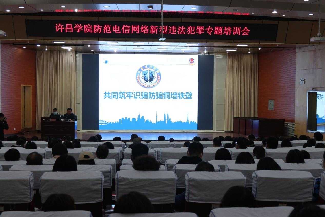 为深入落实岳修峰院长对预防电信网络诈骗犯罪工作的重要指示,切实有效提高许昌学院师生防范电信网络诈骗意识,11月4号上午,保卫处邀请许昌市公安局反诈中心押晓雷副支队长为我校师生做了一场防范电信网络新型违法犯罪专题培训。学工工作处、团委相关负责同志,保卫处全体工作人员、校属各单位安全管理人、安全员,各二级学院党委副书记、团委负责人,全体专、兼职辅导员,学生代表共计200余人参加培训。报告会由保卫处马科副处长主持。