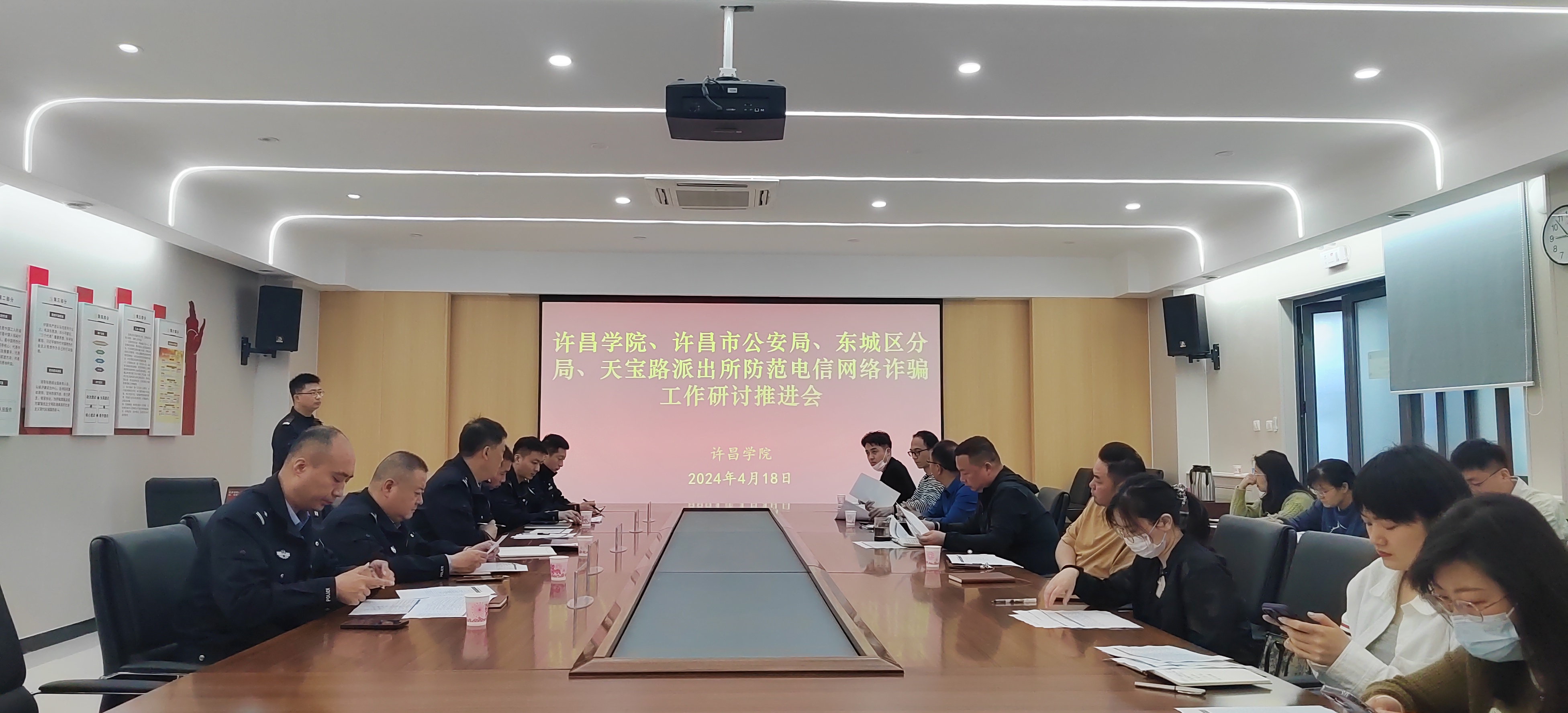 为进一步推进全校防范电信网络诈骗工作,切实保护广大师生的财产安全,2024年4月18日上午,许昌学院保卫处在二楼会议室召开了防范电信网络诈骗工作研讨推进会,许昌市反诈中心教导员押晓雷,东城区分局副局长张锦旗、社区警务大队长武歌,天宝路派出所所长张寅、副所长张栋阳,各学院(书院)辅导员代表参加了会议,会议由保卫处处长陈浩勇主持。