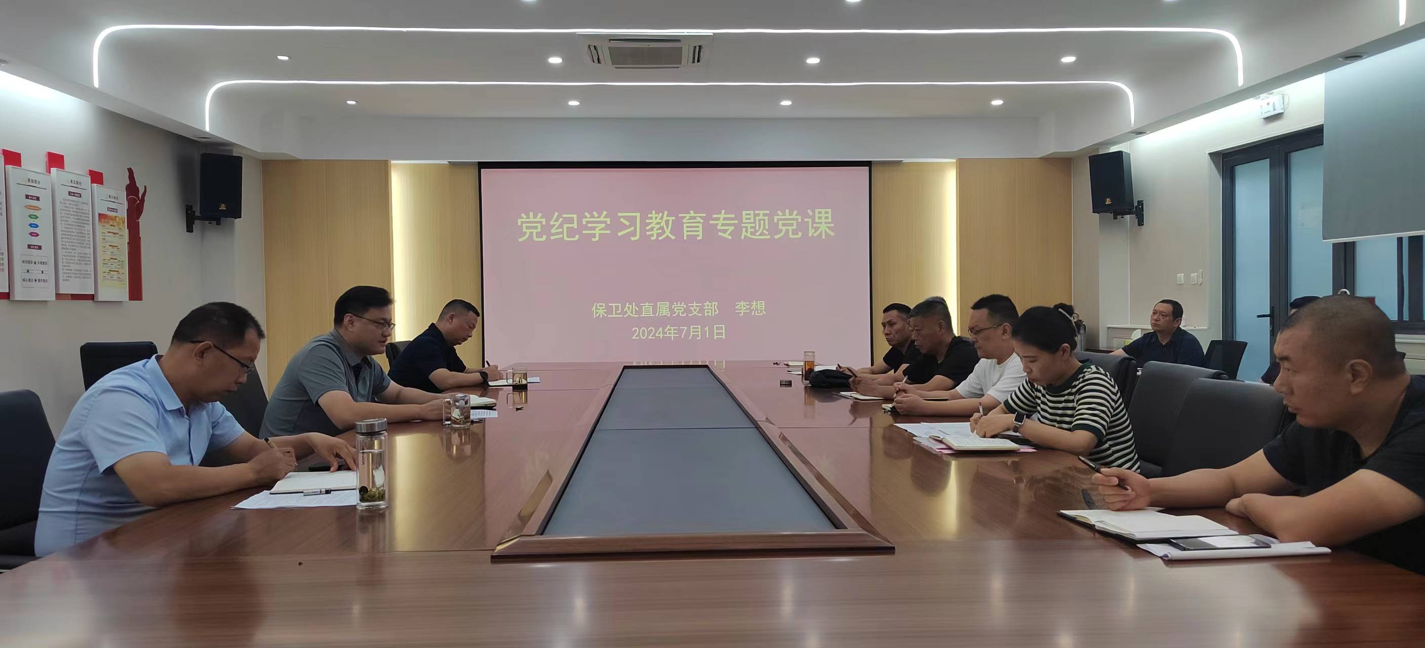 7月1日上午,保卫处直属党支部党纪学习教育专题党课在保卫处会议室召开,保卫处直属党支部书记李想为全体党员干部讲专题党课。
