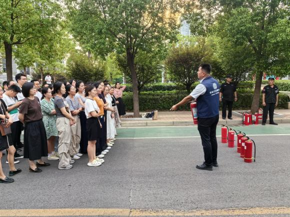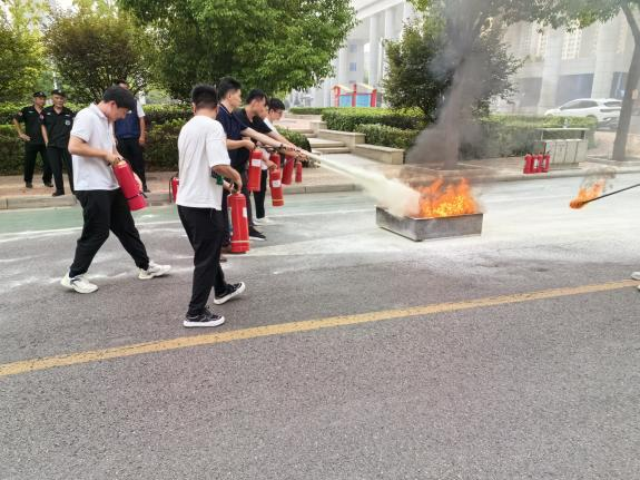 培训结束后,在文科综合楼和学校北广场分别举行火灾现场疏散演练和干粉灭火器灭火实操演练。
