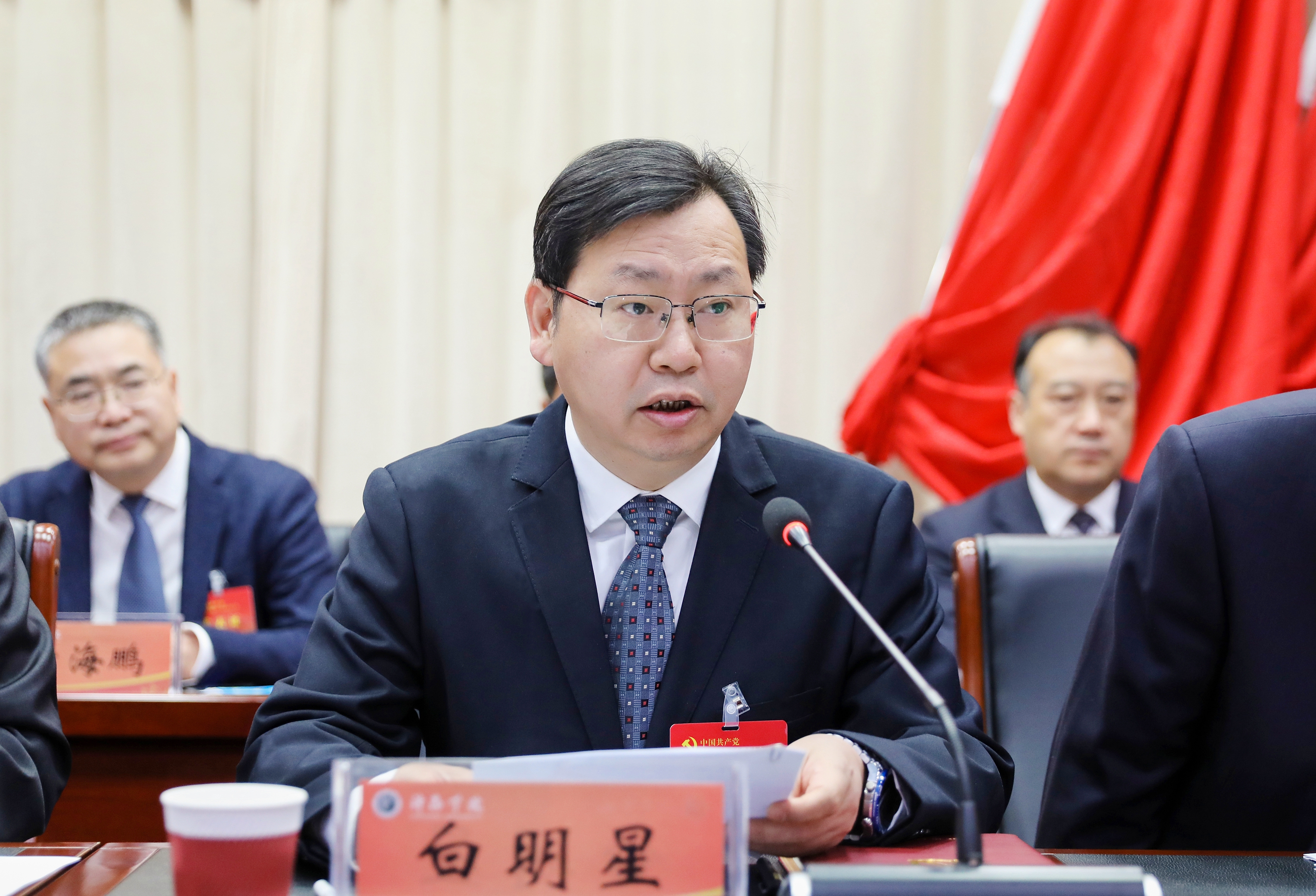 白明星在致辞中代表中共许昌市委、市政府向大会的召开表示祝贺。他指出,许昌学院是许昌重要的功能资源、城市名片和人才高地,近年来学校办学综合实力不断增强,社会影响力和美誉度不断提升。希望学校在新一届党委领导下,进一步发挥好科技创新主力军、策源地和创新枢纽连接点的作用,力争为许昌市经济社会发展贡献学院力量。
