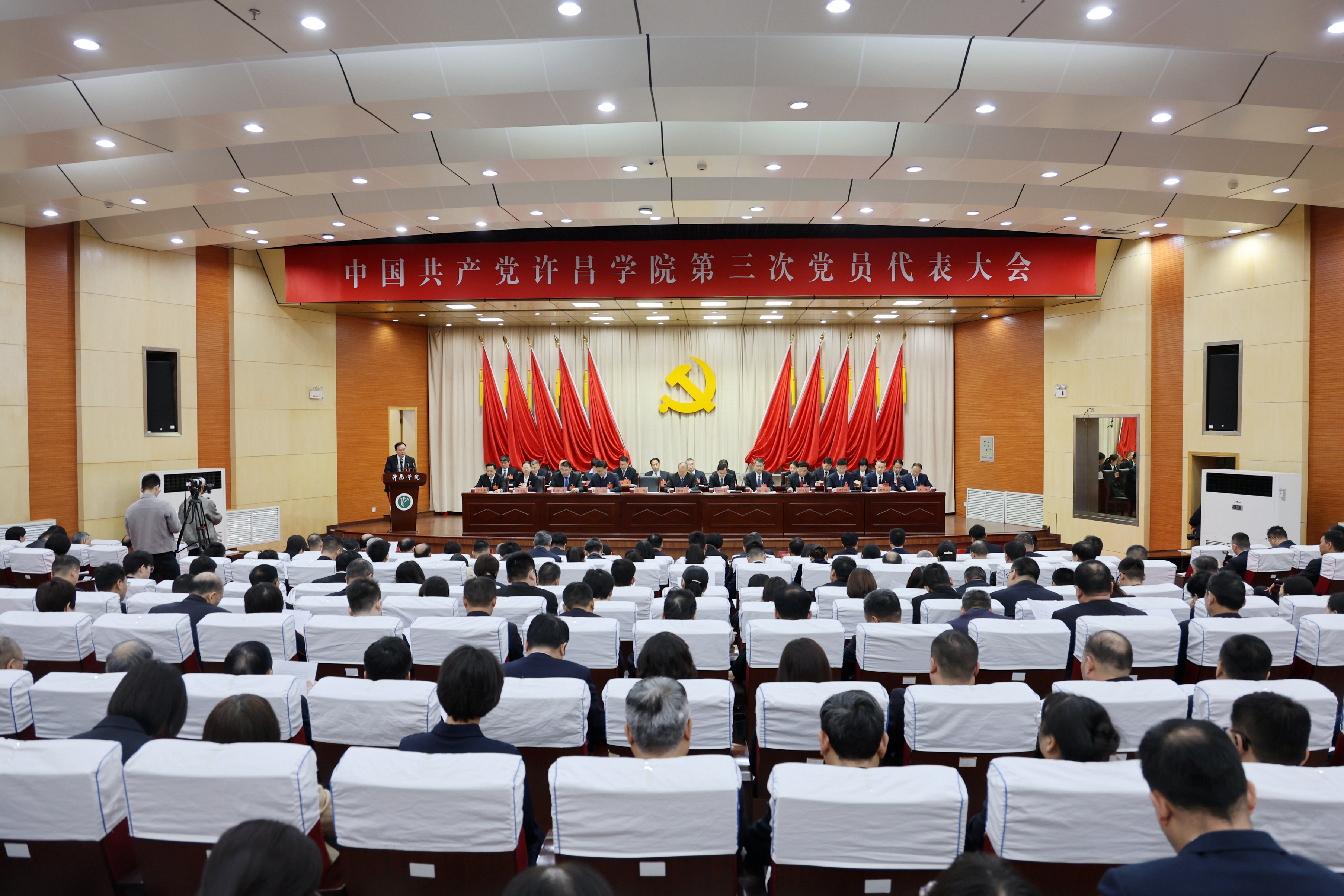 4月13日上午,中国共产党许昌学院第三次党员代表大会在图书馆学术报告厅开幕。