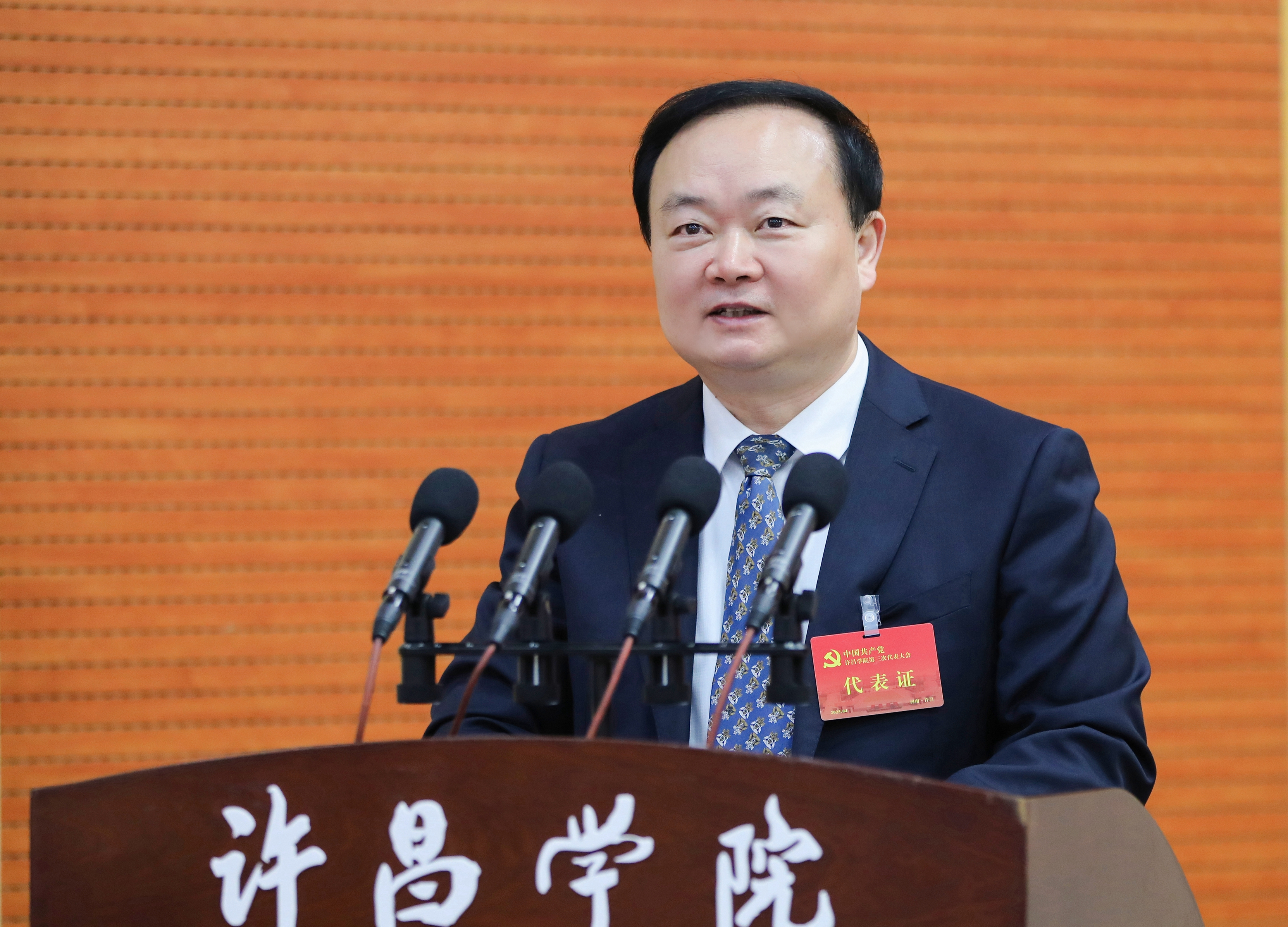 郭涛代表中国共产党许昌学院第二届委员会,向大会作题为《凝心聚力,砥砺前行,为全面建成富有特色的高水平应用型大学而团结奋斗》的报告。