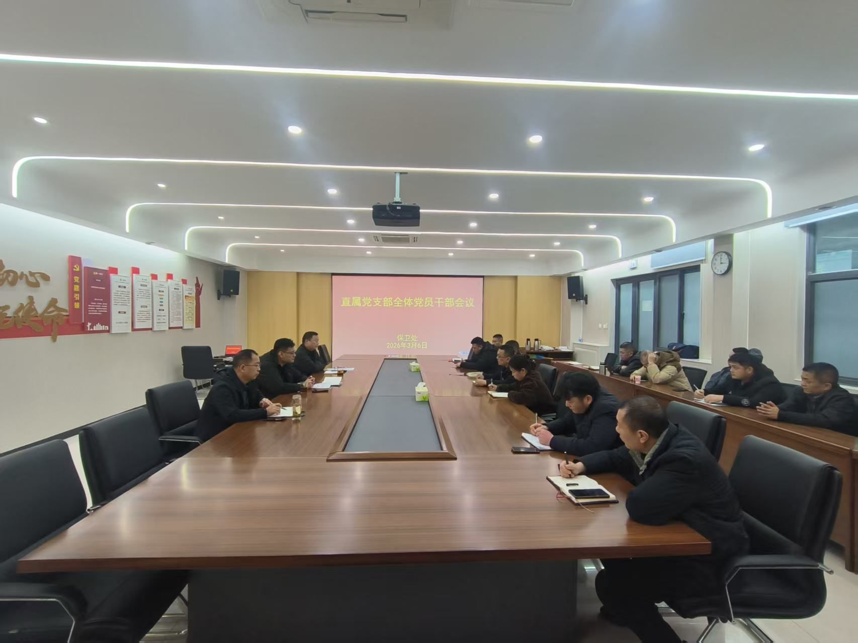 为扎实推进树立和践行正确政绩观学习教育走深走实,进一步统一思想、明确任务、压实责任,3月6日,保卫处直属党支部召开全体党员干部会议,会议由支部书记李想主持,对全处学习教育工作进行全面安排,全体党员参会。