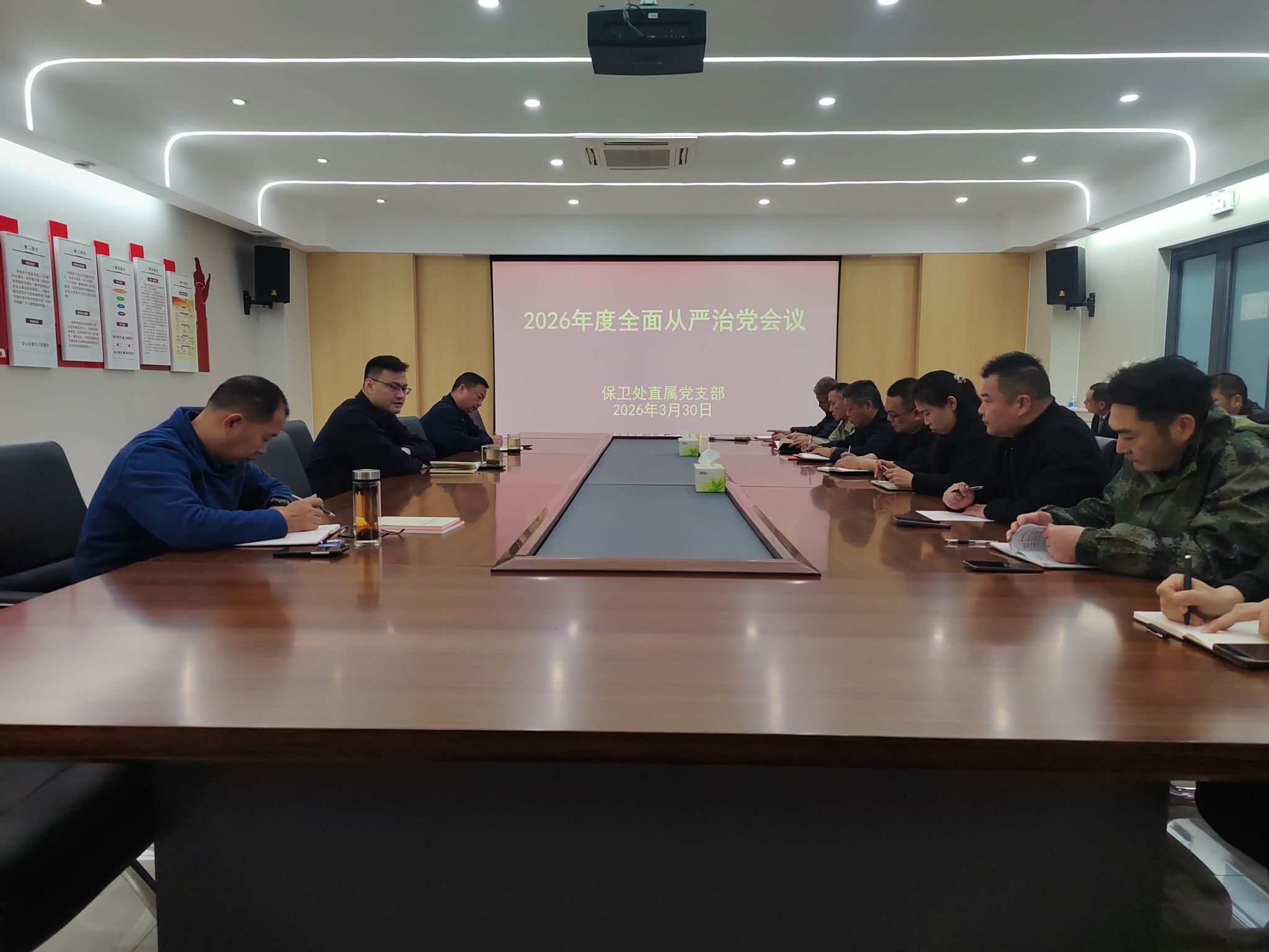 为深入贯彻落实学校2026年全面从严治党工作部署,持续深化党建引领校园安全治理,筑牢校园安全稳定防线,3月30日,保卫处直属党支部在北大门西附楼二楼会议室召开2026年全面从严治党工作会议,支部全体党员、各科室负责人参会,会议由支部书记李想主持。