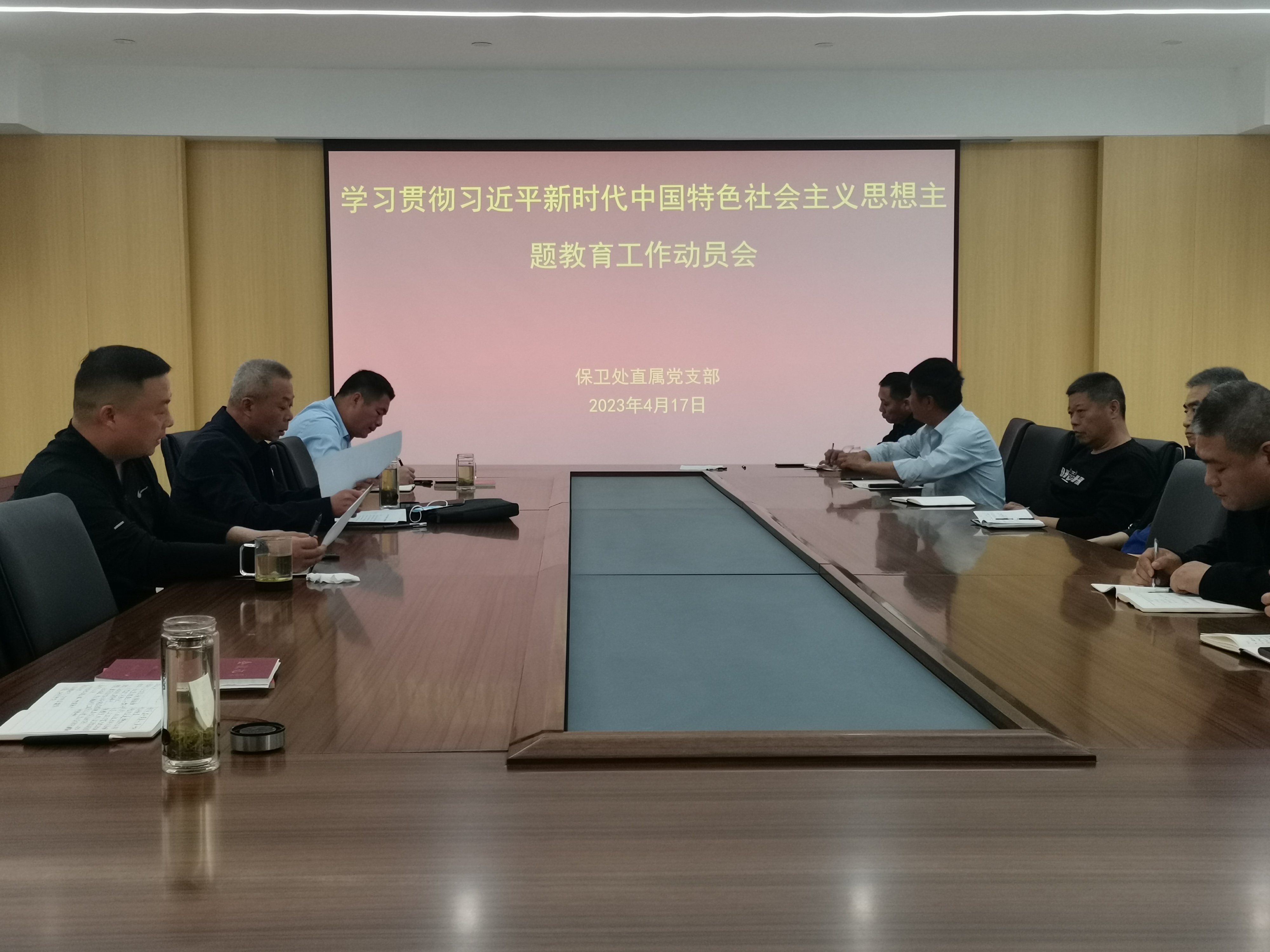 4月17日上午,保卫处直属党支部在二楼会议室召开学习贯彻习近平新时代中国特色社会主义思想主题教育工作动员会,党支部书记康伟、处长陈浩勇、副处长马科及全体党员参会,会议由陈浩勇处长主持。