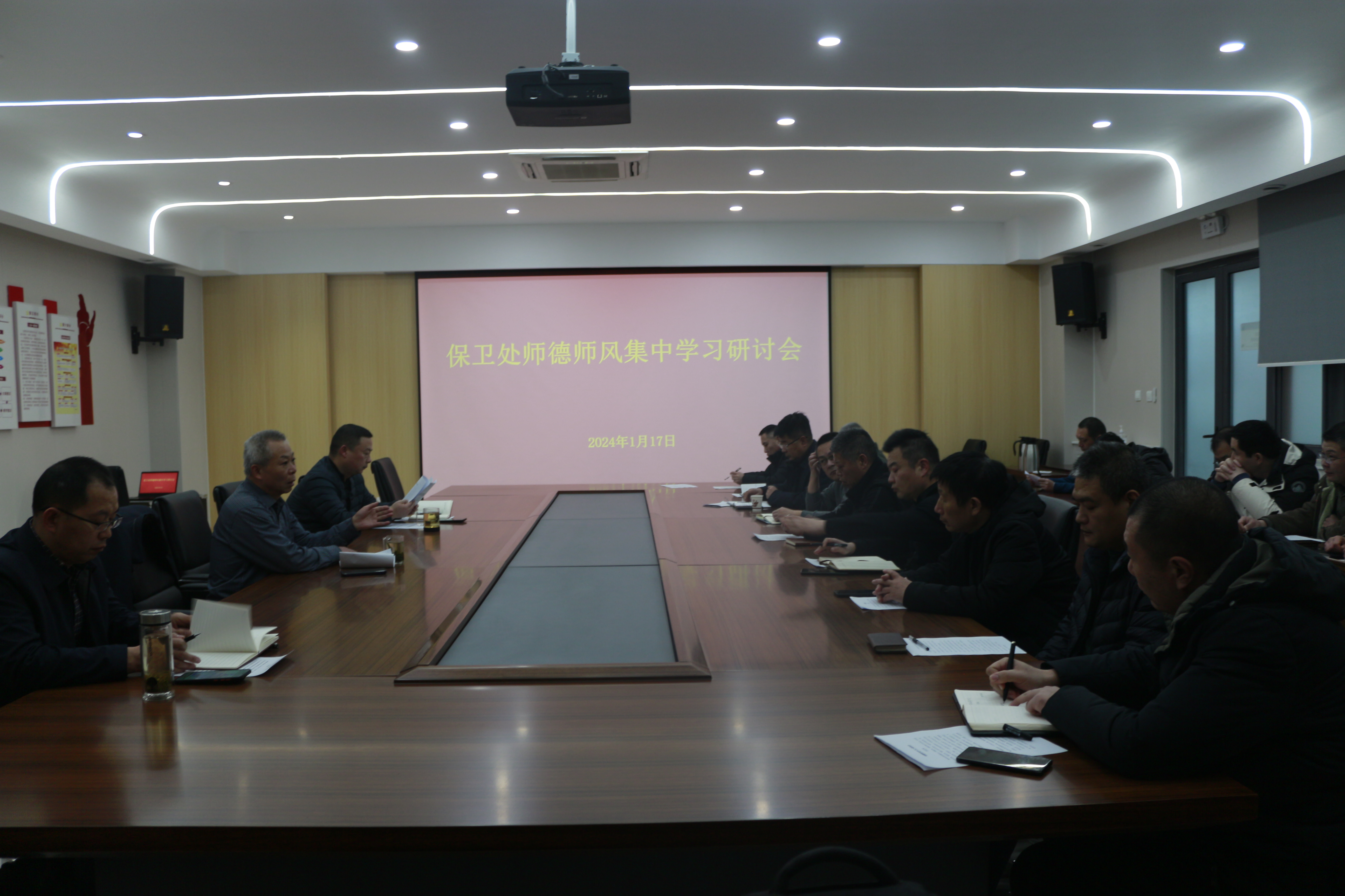 1月17日,保卫处直属党支部在二楼会议室召开师德师风集中学习研讨会。支部书记康伟、处长陈浩勇,党支部全体党员参加。会议由康伟主持。