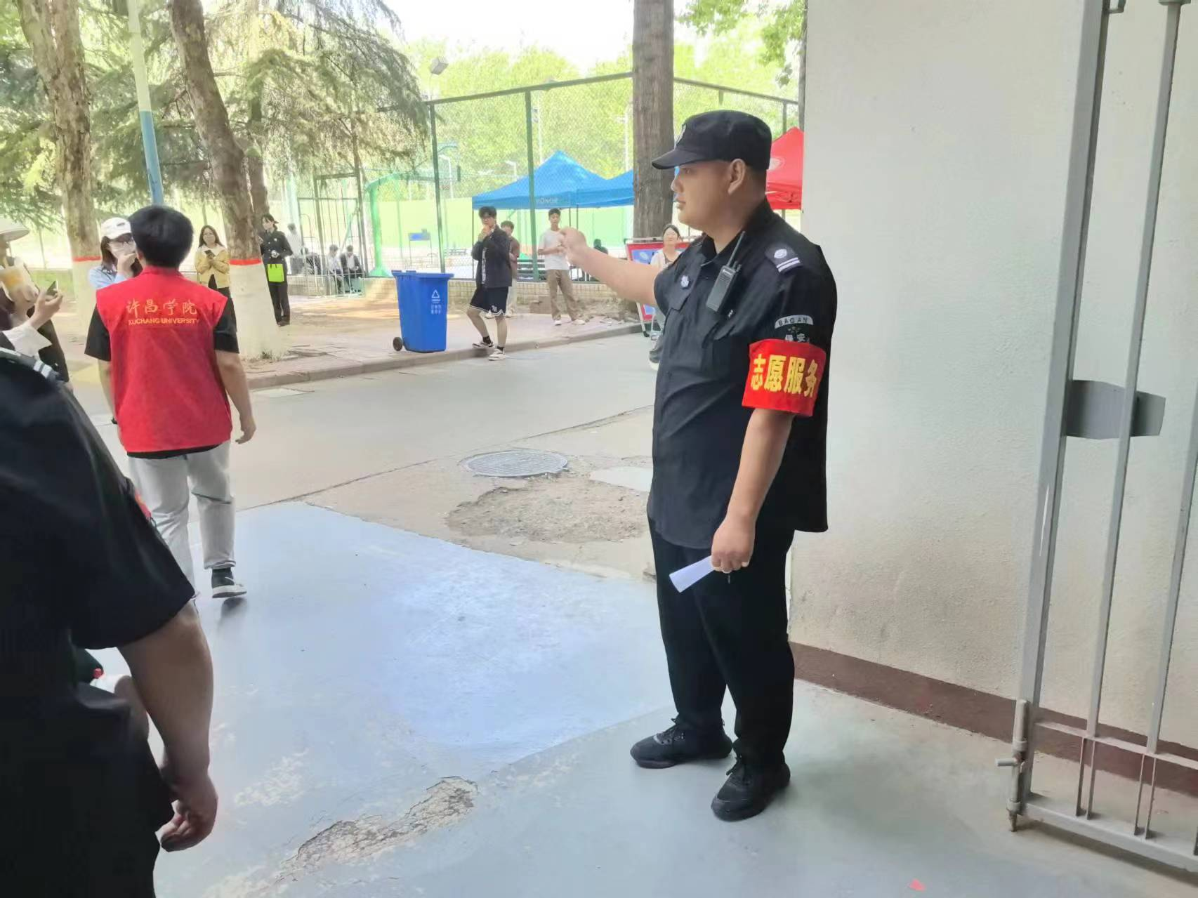 4月25日至27日,保卫处直属党支部组织发展对象参加许昌学院第十九届运动会志愿服务活动。运动会期间,负责维护校园交通秩序及道路交通安全管控,尤其是羽飞田径场入口、智慧楼门口等交通重点区域,耐心细致劝导各类车辆不要乱停乱放,确保参赛选手和观众的安全出行。
